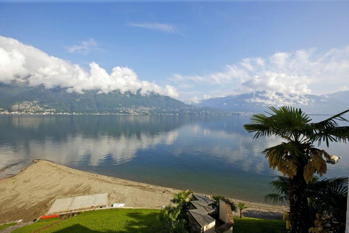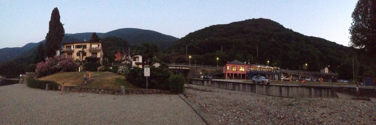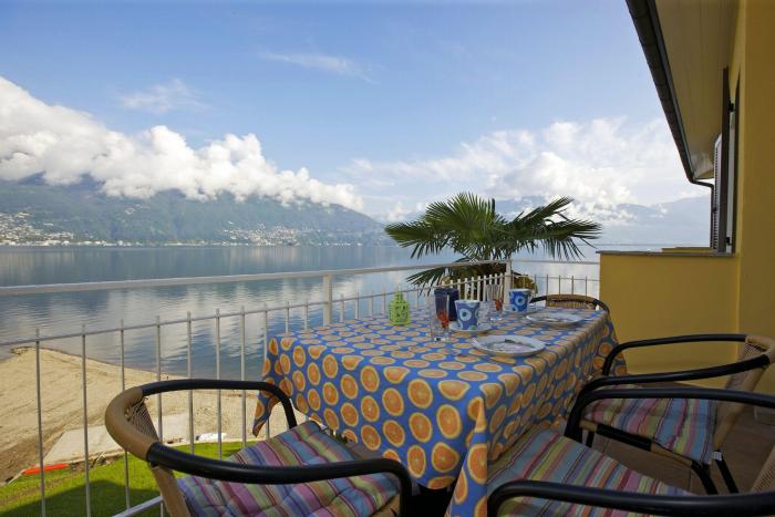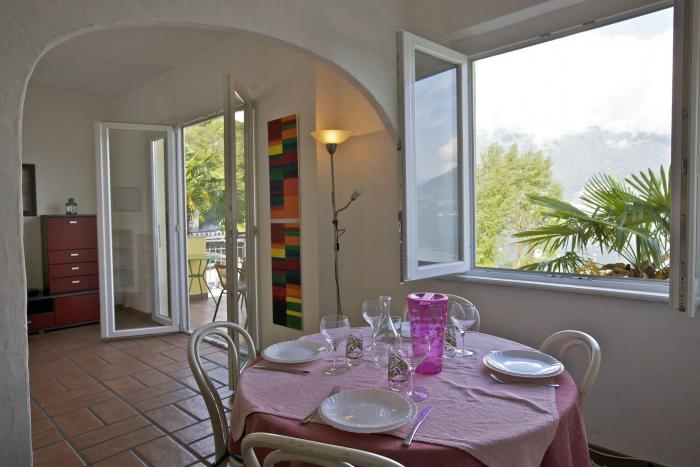Die Wohnung hat wunderschöne Sicht auf den Lago Maggiore (Ascona, Ronco, Brissago) sowie einen direkten Zugang zum Seeufer mit Wiese, Strand und Flussdelta. Sie liegt drei Gehminuten entfernt zur Grenze. Dort kann man in einem Tankstellenshop die notwendigsten täglichen Lebensmittel einkaufen. Direkt neben der Liegenschaft auf der andern Flussseite hat es einen schönen Spielplatz und eine Pizzeria mit Terrasse.